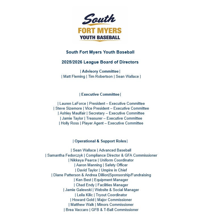 (For information on our All Star voting process, please visit: https://www.southfortmyersyouthbaseball.com/allstars)